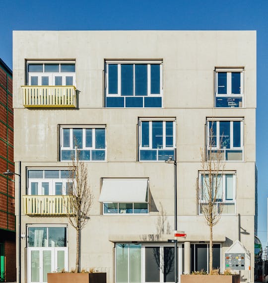 The buildings Both of the buildings by Adam Khan Architects celebrate raw construction and nod to the emerging sites elsewhere on the Peninsula. A3 is a monolith of concrete in the centre of the site, while B3 is a lightweight building with an Op Art-inspired facade. Both will provide studio spaces. The development of building B3 is on hold as the council finalises plans for the Silvertown Tunnel. The practice London-based Adam Khan Architects has a reputation for sensitivity and elegant buildings that address key issues of our time like social inclusion, sustainability and public space. In 2010 it won the RIBA National award for its renovation of a day centre for young homeless people in London’s Somers Town and it is currently working on a much larger project in the area, which will include 10 social homes, community playgrounds, a youth club and rooftop multi-use games area.