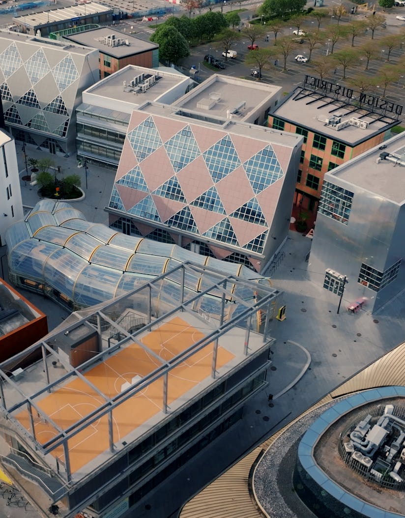 Located in the heart of Greenwich Peninsula, Design District is moments away from The O2 arena, with riverside views in nearly every direction. Our spaces are purposefully designed to enable you to host the most memorable events, from presentation and workshop spaces, to lounges and dining venues, you can even hire out London's only rooftop basketball court.