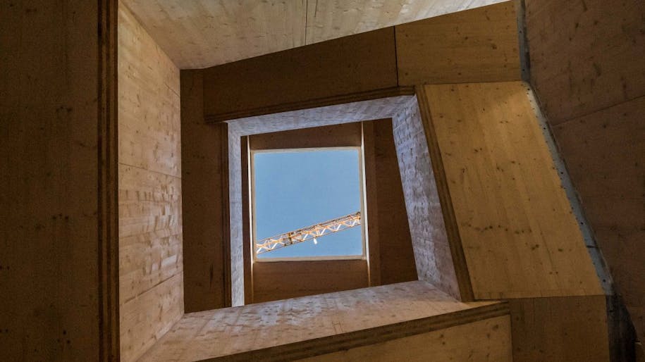Now Wilkhu can’t wait to get back on site to see how things have progressed since construction resumed. He’s also looking forward to producing images of the site upon completion. He specifically recalls the ambiance he felt walking around Mole Architects’ timber frames on his first visit. And, ‘from an aesthetic and light perspective,’ he says, ‘I cannot wait to see the completion of the pair of structures designed by 6a architects, with their sloped sides and huge diamond windows.’ Wilkhu is also intrigued by the potential challenges presented by the close proximity of the buildings, and ‘how to contextualise each space.’ He’s weighing the possibilities of utilising a drone in order to depict the full scale of the project.