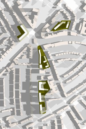 We are also increasingly heading outdoors in search of places to work and meet. As such, the importance of a healthy public realm is becoming ever more apparent. Achieving a hospitable atmosphere and sense of liveliness in these spaces is not simply a matter of leaving a void between buildings. Part of HNNA’s strategy for Design District has been to create a neighbourhood that invites interactions by allowing people to get ‘enjoyably lost.’ Wayfinding is useful, of course, but moments of disorientation and confusion also have their benefits.