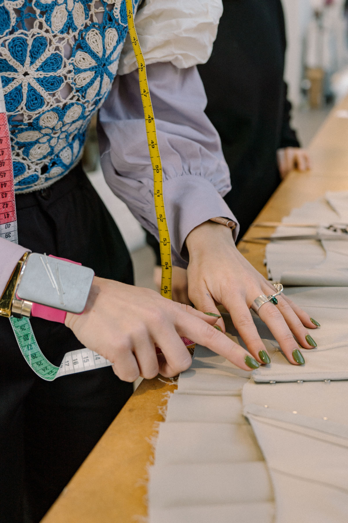 Finally, we’re part of fashion communities including Make it British and the UK Fashion and Textile Association (UKFT), as well as maintaining partnerships with London-based suppliers and vendors. It’s important to us to help brands make sustainable clothing locally, helping them lower their carbon footprint by reducing overseas deliveries. And as a workplace, we offer fair payment, a comfortable studio environment for local seamstresses and take great pride in taking on young apprentices.